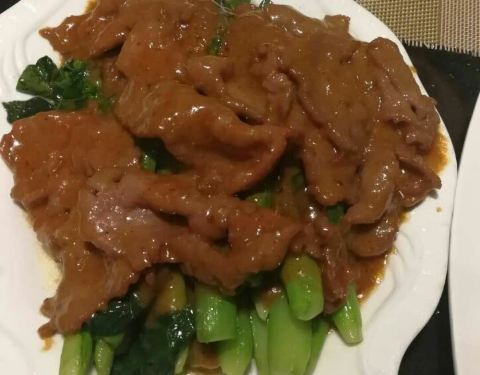 - ...炒芥兰是名菜,牛肉味道好,沙爹味辣中带甜,芥兰脆爽,绿豆爽豆味不算太重,也不太甜,很好的一顿饭