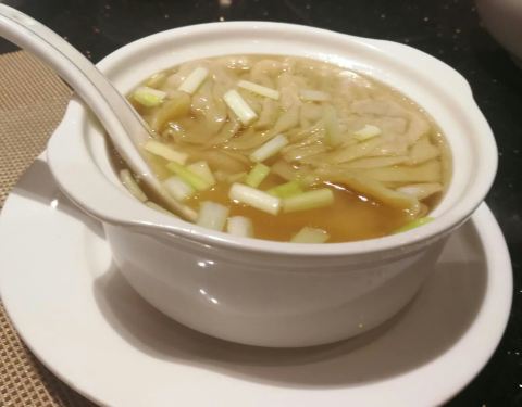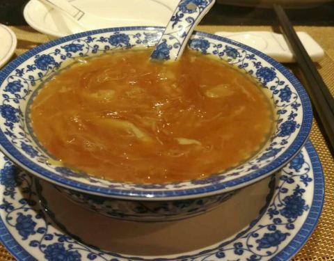 中午时间去饮茶,由于隐藏在酒店里面外面没有招牌,人不算多,食材好,鱼翅灌汤饺挖开外皮真有鱼翅,虽然份量不大但是真货,汤鲜,虾饺的虾有弹性,青菜新鲜,麻酱捞面够乾,味道好,但是偏淡,XO酱炒肠粉没有太...中午时间去饮茶,由于隐藏在酒店里面外面没有招牌,人不算多,食材好,鱼翅灌汤饺挖开外皮真有鱼翅,虽然份量不大但是真货,汤鲜,虾饺的虾有弹性,青菜新鲜,麻酱捞面够乾,味道好,但是偏淡,XO酱炒肠粉没有太油,味道够。牛筋也不错。