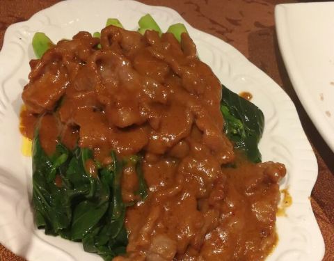 非常熟的店,这次有点失手,个别菜不成,猪脚冻太咸了,鲜味不足,沙爹牛肉炒芥兰酱汁也是过咸,甜度...