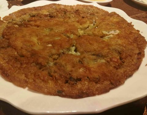 非常熟的店,这次有点失手,个别菜不成,猪脚冻太咸了,鲜味不足,沙爹牛肉炒芥兰酱汁也是过咸,甜度不足,其他菜式没有问题,鹅片大肠卤水鲜甜,食材新鲜,香煎豆腐猪腩肉盘子底不留油,菜入口没有油腻感但是确实用油煎,厉害,蚝烙没有粉粉口感,蛋很多,蚝也新鲜没有腥味,皮蛋酸姜,姜带甜,皮蛋回甘味浓,仓鱼皮香肉嫩,黄金三拼口感味道一流,煎面个人认为必吃。