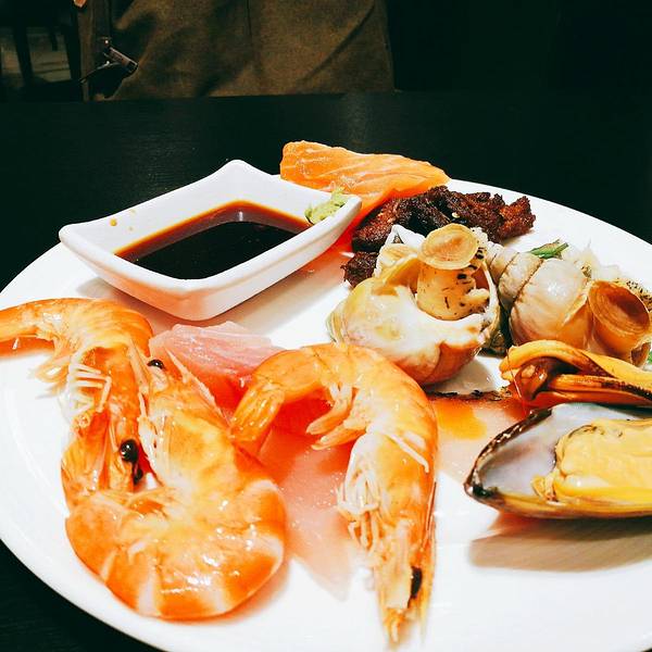 一点左右到门口看看可以进去伐,没想到人好多,不过一点一刻就把我们放进去了,其实里面座位还是挺多的; 三文鱼应有尽有,反正空了就会填上,不说质量有多好吧,至少和一般自助餐差不多;。。