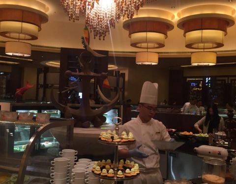 不过这里的自助餐并没有太多海鲜,只有一些三文鱼,虾。三文鱼算是蛮新鲜的,虾也是不错的说。 我觉得 去威尼斯人的话,还是吃自助餐比较划算,毕竟在餐厅吃过午饭至少也要90澳门币人均。