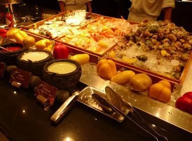 这里并不止海鲜种类少,其他事物的种类也非常少, 热菜大概只有10个左右, 然后海鲜 就只有一些三文鱼,虾,海螺和 希鲮鱼,基本上所谓的国外美食,也就只有东南亚几个国家的餐点,选择也并不多。环境高大上。