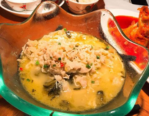 茶香鸡很不错,皮酥酥的,里面的肉很嫩,面条也很好吃,虽然辣,但是够味儿,赞