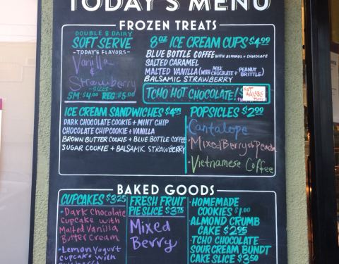 Do NOT come to SF?s famous bakery and ice cream mecca on a diet. Instead: get two scoops of the Blue Bottle Coffee ice cream.
