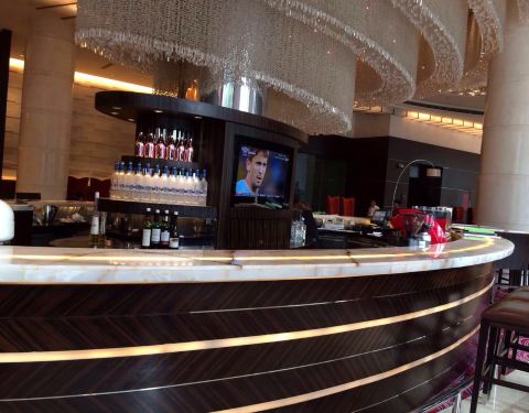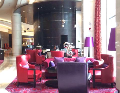 位于品尊国际对面,是家五星级酒店的大堂吧,环境优雅。但是和品尊国际写字楼并不连着。只能说是在写字楼的对面。大堂是非常气派的。