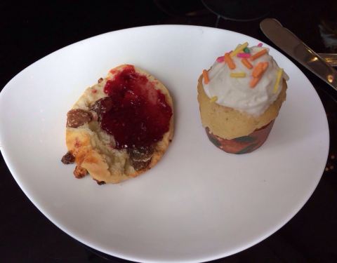 当晚的行政房 可享受特别优待 福利一 酒廊的西点饮品随便吃 啤酒 汽水 矿泉水 放进冰箱 都是有牌饮品 小有档次 晚上 去拿了些小西点~ 个人觉得出品还是不错的 水果塔 草莓相当新鲜 塔底也做得松脆不硬 很不错 传说中的歌剧院没吃到 无碍 在一起跨年就很开森啦