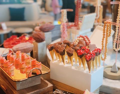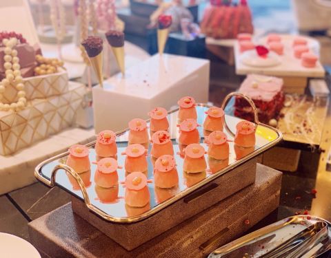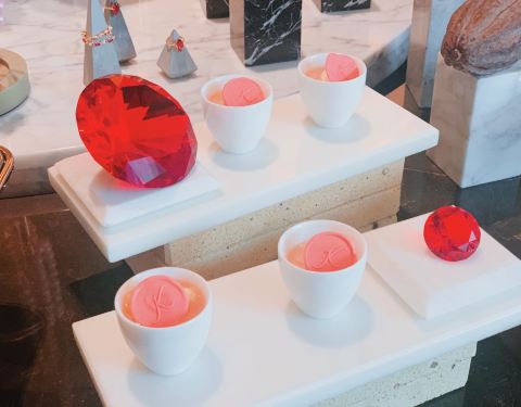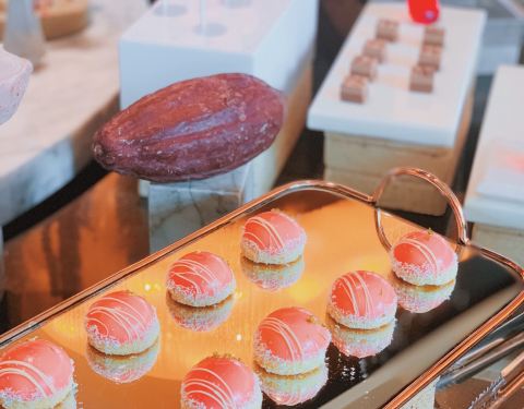 凯宾斯基大堂酒吧 陆家嘴环路1288号凯宾斯基大酒店1楼(近东园路) 地铁2号线陆家嘴站1⃣️号口步行约600米 和闺蜜约在凯宾斯基酒店的元素西餐厅午餐 自助餐厅的环境有些嘈杂 于是转战大堂吧边喝茶边谈事情 凯宾斯基大堂酒吧正推出红宝石巧克力主题的自助下午茶 单人198元的价格在五星级酒店中还算很亲民 且无需支付服务费 当然对女人来说 下午茶不仅要味美 还必须要貌美 高颜值才是下午茶的真谛 红宝石巧克力主题完全附合这个标准 虽说叫作红宝石巧克力主题 其实红宝石、珍珠、钻石都是点缀 所有的甜点、咸点全部美美的粉嫩色系 还未入口已经少女心泛滥 巧克力鹅肝配珊瑚脆 蜜桃奶油布丁 草莓棒棒糖 百香果巧克力慕斯 樱桃奶油泡芙 卡曼橘巧克力棒棒糖 草莓红加伦甜筒 红宝石镜面柠檬芝士 …… 二十几款下午茶点心全部围绕着粉色色系 和巧克力主题 巧克力甜而不腻 咸点更为出色 可惜午餐的自助餐让我有心无力 似乎有些暴敛天物 早知道就应该带我家小公主来 喜欢甜食又视觉系的小家伙 一定爱不释手