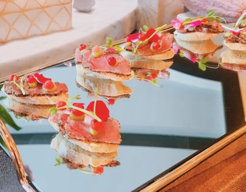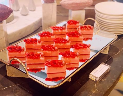 - 特别偏爱咸点里的金枪鱼卷和三文鱼卷,甜品基本上都比较类似,有一款小小的正方形慕斯和杯子装的树莓...