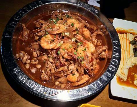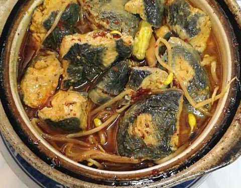 跟着导航七拐八拐进了一个不大像是有好吃的的地方,都怀疑自己走错了,终于找到。 臭大元蛮好吃的,有点辣,下面有一些豆芽菜。千张结烧肉蛮好吃,很下饭。鱼头汤好喝。