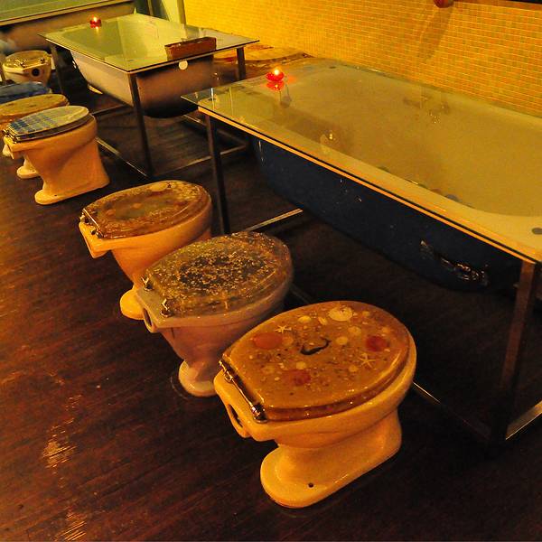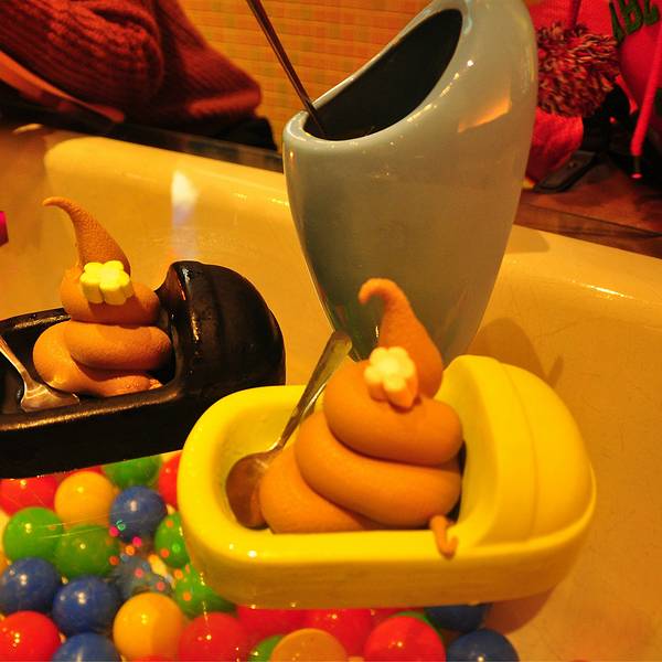 一家有马桶式幽默的便所主题餐厅,用马桶当食器,噱头十足。不到门口,就看到店外墙好大一个马桶,相当惹眼!餐厅内有100个座位,全部是马桶,顾客坐在马桶上,用类似于迷你马桶的餐具食用各种美食。此外,便便形状的菜单,提供了套餐,火锅,意大利面,焗烤及冰品和饮料。类似大便形状的巧克力冰淇淋,形象逼真,不过吃它真需要勇气,小尝一口倒很香浓。这家还被选为全球十大怪异主题餐厅,推荐给重口味朋友。特色推荐:马桶小冰(12号冰),招牌马桶咖哩牛,冰品,蓝带猪排,日式牛奶火锅。
