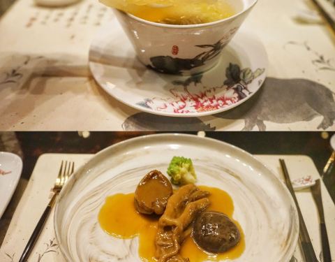君品提供的美馔,从中式的广东、江浙上海料理,到西方的法式下午茶、相思木炭烤肋排与半自助料理,颐宫的座位区分为三种:半开放式包厢;开放式座位;包厢式。椅子也采中国风,值得注意的是开放区座位墙面的镜子...君品提供的美馔,从中式的广东、江浙上海料理,到西方的法式下午茶、相思木炭烤肋排与半自助料理,颐宫的座位区分为三种:半开放式包厢;开放式座位;包厢式。椅子也采中国风,值得注意的是开放区座位墙面的镜子,宛如一幅花鸟挂画每一笔,都是由画工师傅一笔笔画上去的。梅汁蕃茄、蜜芋头、桂花百合到麻辣牛腩等四道开胃点心皆十分养生,以鸡肉为馅的蟹黄烧卖,肉质弹嫩有嚼劲,泰皇咖哩虾是取自泰国的皇室料理,除了以台湾的海虎虾为食材,另以法式面包搭配咖哩粉炒咸蛋黄,别有一番风味。