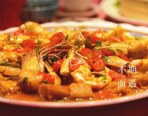 - 金沙明虾佐螺丝卷会令人惊艳,肥美的虾肉在咸蛋黄的酥软中得到混合的口感。粤菜的传统中有了不少新意