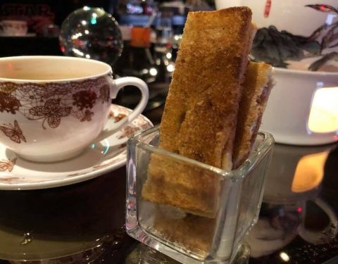 需要事先预定,环境非常优雅,点了虾饺,先知鸭(这个需要预定)然后鸭架做了避风塘的做法,老虎斑球炒橄榄菜,让人惊讶的,是两款甜点,炸芝麻球和炸鲜奶,味道棒棒的,我们两个人吃的很饱。