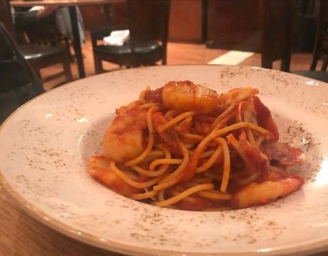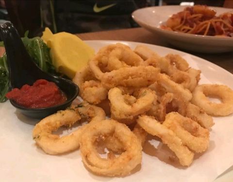 很不错的意大利披萨店,里面的意大利薄脆火腿披萨很好吃,上面的火腿味道太赞了,国内没这么好的火腿,海鲜炸鱿鱼也不错,很新鲜。