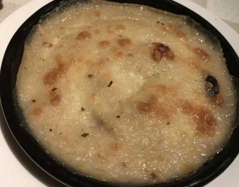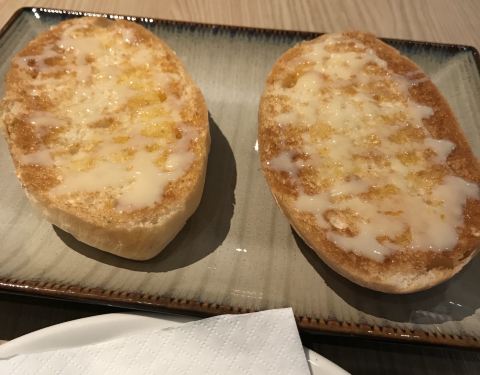 好喜欢他们家的餐前的面包,与众不同,就像港式茶餐厅里面的猪猪包一样,上面有好多炼乳,甜甜的,面包也烤得脆脆的。搭配蘑菇街来吃的。