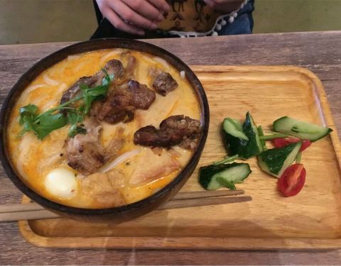 ...龙两吃甚至还感觉不太新鲜,倒是主食类汤粉深得我心,叻沙口味的米粉加上海鲜熬制的高汤底,味道很好