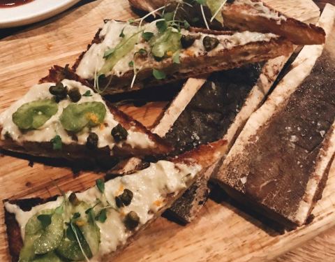 标准的西班牙菜,墨鱼汁海鲜饭超级大的一盆,感觉3个人都够吃,腌蔬菜全麦三明治也算是特色,新鲜的蔬菜加入腌制过的酸菜和汁水,然后拿全麦面包蘸着吃,口味独特。