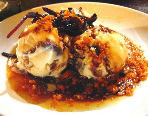 Larger than tapas; duck egg w/black truffles - must get! Also tried Long Island striped bass w/peaches, razor clams, bone marrow, jamon iberico & mussels w/chorizo. Complex flavors and unique pairingsLarger than tapas; duck egg w/black truffles - must get! Also tried Long Island striped bass w/peaches, razor clams, bone marrow, jamon iberico & mussels w/chorizo. Complex flavors and unique pairings