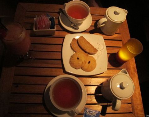 红茶与混合果汁,那配的小点心酥酥的,有淡淡的奶香