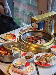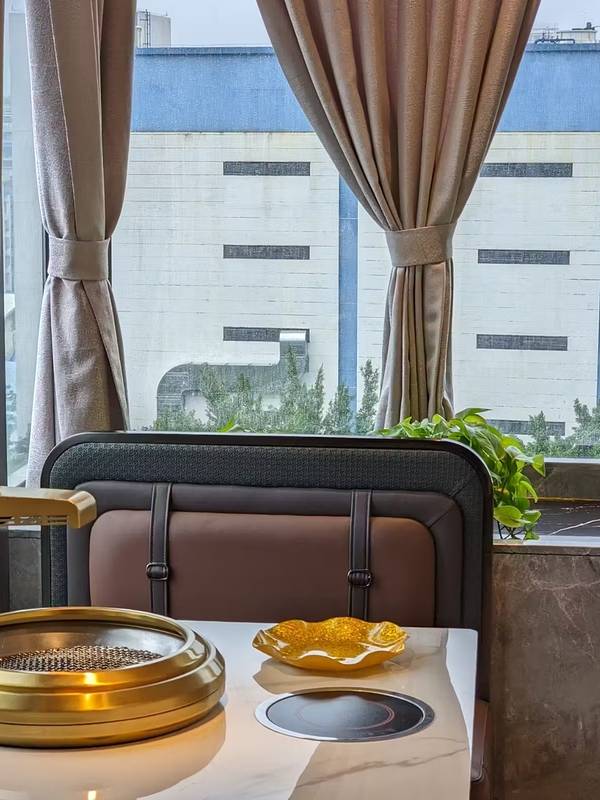 这家是韶关新地标摩尔城四楼的吉布鲁烤肉+火锅一个桌子,桌子自我感觉有点小一边吃烤肉一边打火锅也是很不错的哈!火锅也是可以选择鸳鸯锅 一个不辣一个辣