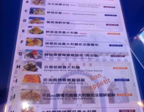 吸引我的是蓝白色调的酒吧风格装潢,点了金枪鱼炒饭,南瓜汤,蛤蜊面。分量好足!虽然地理位置有点尴尬,毕竟酒香不怕巷子深,味道确实非常不错,很有特点,尽管不是垦丁地道风味。