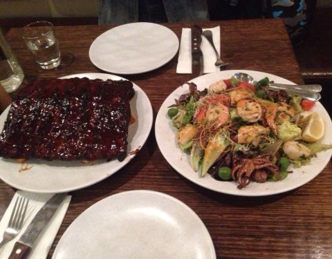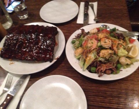 游玩邦迪海滩后在这里吃的晚餐 点的半份猪排配薯条40AUD一份海鲜沙拉36AUD 份量足够 总体来说不错 猪排应该是甜面酱烤的稍微偏甜 海鲜沙拉是鱿鱼虾和墨鱼仔加蔬菜拌的 海鲜新鲜价格稍贵吧 附近游玩的可以选择这家餐厅