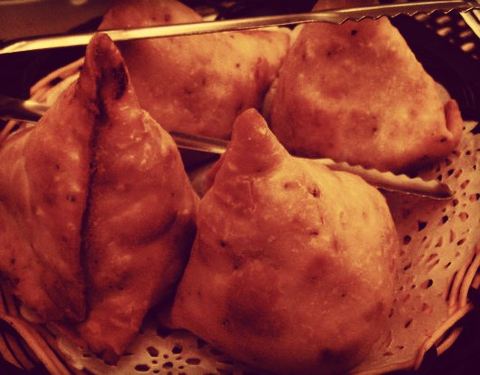 我们点了他们家的两道菜,后来才得知竟然都是印度菜呀~ 小三角包也不知道原名叫什么,应该很高大上吧~因为的确很好吃。咸咸的味道,里面包裹着肉馅,很赞很棒的口感,在我们饿了的时候上来这样的货色~真是怒吃秒...