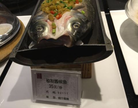 整个就餐区域分三大块,方式铁板烧、济阳江烧烤及中餐区,区域名称及中餐区的菜品摆放区都是根据徽州十八大…