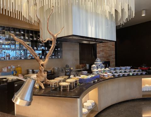 天津悦榕庄的餐还是不错的,虽然不及亚特兰蒂斯。今天还是点评两句: 1、早餐还是比较多、服务也不错 2、橙汁不错、包子不错、混沌不错