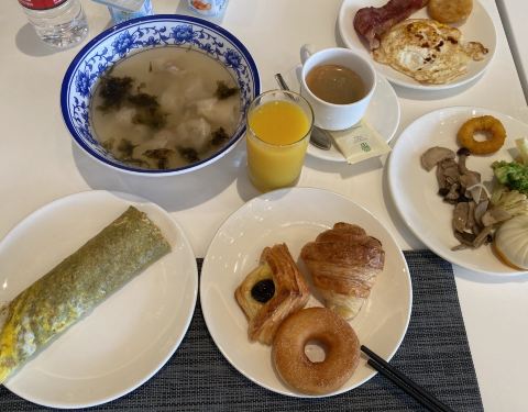 今天还是点评两句: 1、早餐还是比较多、服务也不错 2、橙汁不错、包子不错、混沌不错