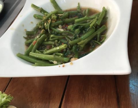 鸡中翅很好吃,但是忘记拍了照片,好可惜,空心菜非常的好吃,推荐!摇滚主题风格的连锁店,还有露天位置
