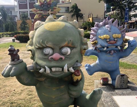 台南第一站 文章牛肉汤 牛肉汤很爽口牛肉很嫩 五颗星推荐 街对面偶遇一组萌狮 作为安平的吉祥物 也太可爱啦 特别是那只抱着小鸭子的