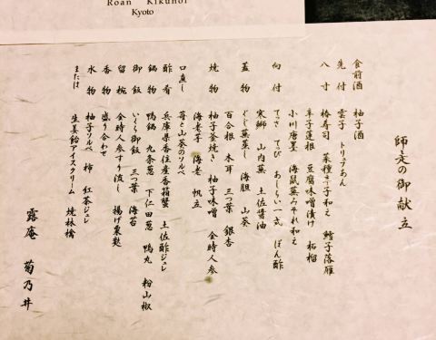 菊乃井露庵服务一级棒,中午的比晚餐便宜三分之一,为了节约成本,我们就选择了中午去吃,反正晚上也吃不到个什么,建议提前一个月预定,实在是太抢手了。