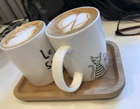 - 要的拿铁咖啡师心情很好还会拉花,味道也非常的地道浓郁。搭配烘培的小饼干很好吃