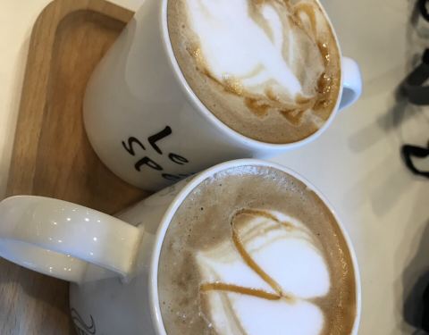 要的拿铁咖啡师心情很好还会拉花,味道也非常的地道浓郁。搭配烘培的小饼干很好吃