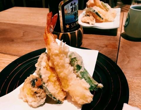 ...,那个箩筐荞麦面很好吃哦,天妇罗炸的也很好吃你,大虾只有一个,但是很棒哦,炸蔬菜的味道也很好哦