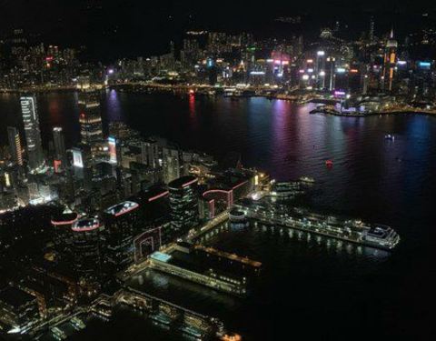 在一百多层,俯瞰维多利亚湾,很漂亮,来这里酒吧不允许穿短裤噢!