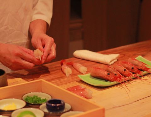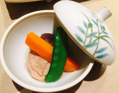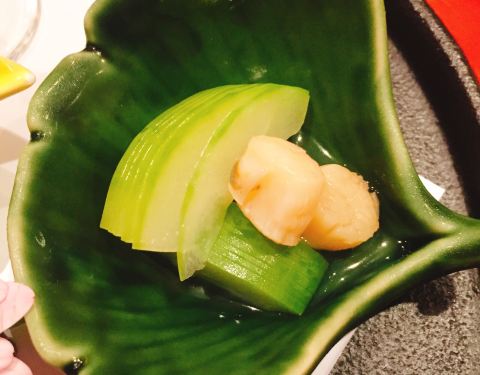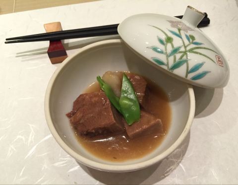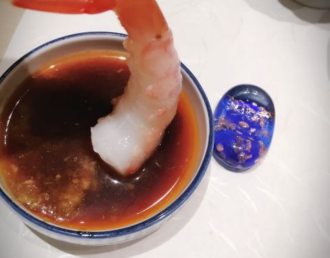 店铺整体装修基调带来一种高冷之感,色调偏冷之余,几乎没有装饰,开放式的厨房、刀法娴熟的师傅,干净整洁的刀具,搭配精致餐具茶杯等。这一些细节让这家“性冷淡”风餐厅有了温度。吃惯了日料自助点单,难得亲眼看到师傅站在面前做出每一道料理,能让你从清淡到浓厚品味全十五贯的日料美食。鮨莲没有固定的餐单,采取“定制”菜单,套餐内的菜品根据季节变化而随时改变,来这里才知道什么叫高品质的寿司专门店。 ☞ 味增煮牛舌:他家的招牌,汤头浓郁,牛舌煮到已经完全软糯,一口下去不会有平时吃到的紧致感,分量十足。配料上有芋头和洋山芋,还有些许荷兰豆。比较欣赏浓郁汤头,牛舌软糯有韧劲。 ☞ 甜虾:绝对亮眼,不仅具备甜虾的强势甘甜,柔软弹牙、略带黏性的质感亦不在牡丹虾之下。出色的弹性能让人理解为何活虾寿司被称作“跃寿司”。 ☞ 鲔鱼:赤身鲜味十足,又透着血液的酸味,活力四射;又加一小块切碎的大脂来丰润油脂。 ☞ 枪乌贼: 对于我这个软体动物爱好者,枪乌贼自然很合胃口。弹性、黏度、甜味都很不错,绝不会像牛皮糖一样韧韧咬不动。 ☞ 金枪鱼寿司·中脂赤身和油脂最平衡的部位,toro的绵密滋味入口满足。 每晚套餐内容包括前菜、吸物、刺身(5类)烤物、煮物、寿司(7贯)味增汁、甜品。