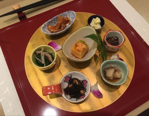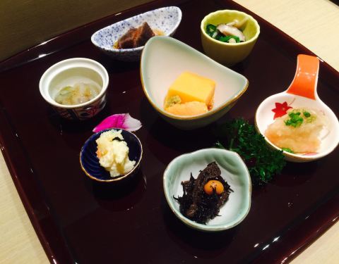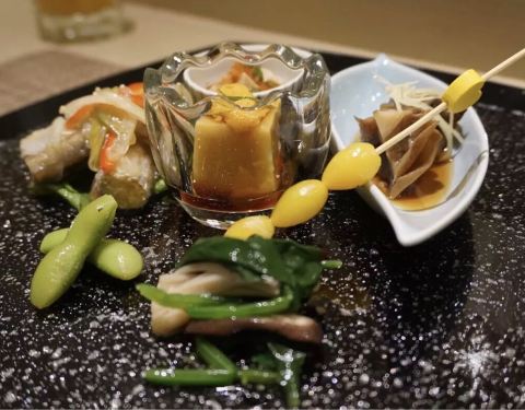 - 一上来的前菜总共七种可谓是诚意满满,最爱海胆豆腐,鲜甜海胆搭配鸡蛋般口感的豆腐作为开胃小菜着实不错