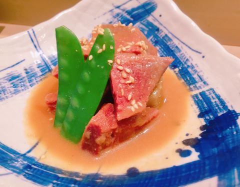 - 中脂赤身和油脂最平衡的部位,toro的绵密滋味入口满足。比较欣赏浓郁汤头,牛舌软糯有韧劲