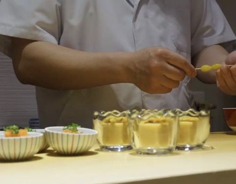 这个店铺的门噢,小是小的来,你一不注意铁定会错过,入店里面属于小而精致型,大概能坐十个人左右的吧台形式,让人想起了深夜食堂,不过人家可比深夜食堂精致的多噢~ 前菜n多样,唯独觉得海胆豆腐最美味~ 秋刀鱼松露卷吃了辣么多日料第一回吃,有创意,好吃~ 松露土瓶蒸,一个字,鲜! 寿司n多种,鲔鱼寿司,海胆寿司,金枪鱼腩寿司等等都是店内大厨现场做的,开放式的吧台兼料理台,让你吃的一览无遗~ 金枪鱼泥饭配着少许鱼籽,量是日料型的标配,可就是让你这种浅尝即止,勾住你的下次光顾~ 甜品,鸡蛋布丁,中规中矩~ 总体一份套餐580,虽有点小贵,但难得奢侈一回还是值得的,就冲着大厨亲力亲为的匠人手作,这店铺的小雅致,器皿摆盘的精致优雅,也会想着选个哪天再来点小酒~