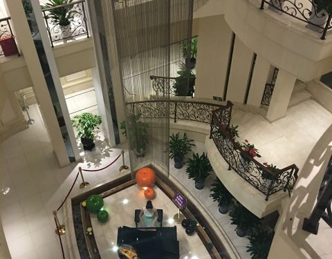 ...西南角,这个餐厅装修的很讲究,有下沉式广场,菜系以粤菜和泰国菜为主,还有北京烤鸭,味道非常不错