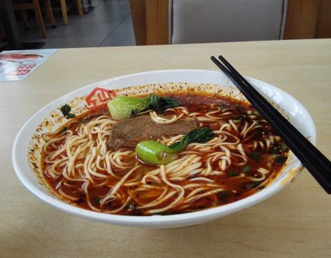 - 兔子头10元,还有很大份的面,担担面,麻辣诱惑,是一次非常高兴的旅行美食体验