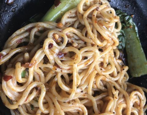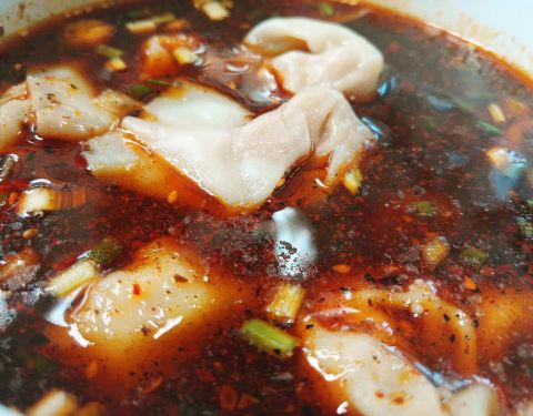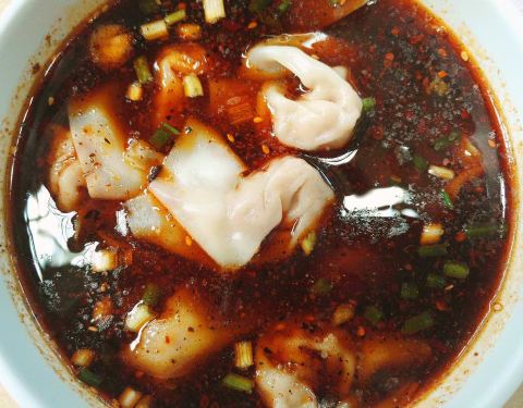 点了红油龙抄手和担担面,味道不错 辣味足,成都机场这家店不错