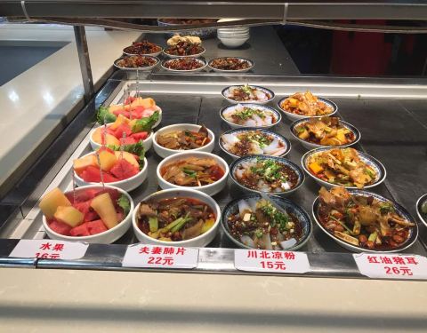 挺实惠的小吃,各种都有。喜欢口水鸡,水果冷面也都不错