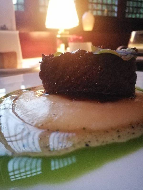 微脆的表皮内,是软萌口感的和牛,搭配分子土豆泥料理也不错哦!只有亲身体验才会懂~记得趁热先吃原味哦