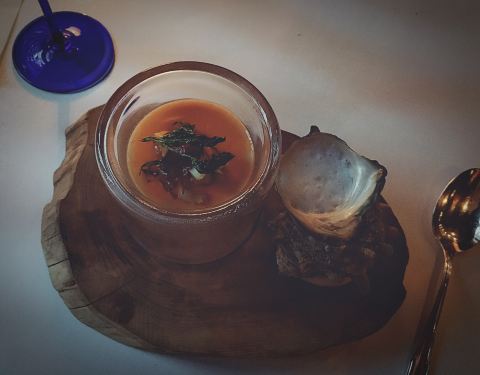 孟小姐30岁的生日大餐,重金砸向了黑珍珠二星餐厅——La Villa三嚥阁 餐前小食4道:黑麦面包配海苔黄油、冬阴功生蚝、慕斯春卷、牛肉盏。慕斯春卷大大超出期望,酥脆的春卷皮里面是精细研磨的春菜慕斯,春卷皮...