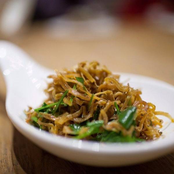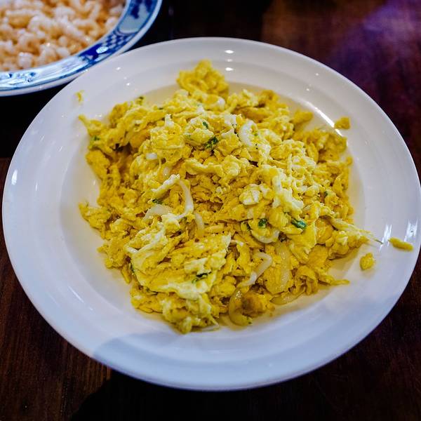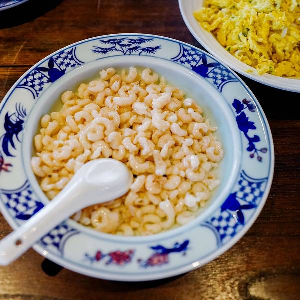 洞庭饭店 镇上最出名的馆子当属这里了!从民国六年(1917)开业至今,已百年有余。一进门,被镇住的不是门口那张八十年代的菜单,而是大堂一溜的八仙桌。记忆中这样的八仙桌是儿时外婆家的样子,坐在长凳上抬着下巴扒饭;又有点像旧时茶馆的样子,一张八仙桌四条长凳一壶茶。清炒虾仁,银鱼炒蛋,蚌肉金花菜,拌面。菜量还挺大,我们两大一小根本吃不完这四个菜,最多也就吃了一半的样子。虾仁是河虾仁,不是大个海虾仁。 肉哥是那种嘴特别叼的小朋友(随我),海虾仁是根本不吃的,但是对嫩嫩的河虾仁很爱;拌面为肉哥点的,他是一个假南方小孩,爱极了面食,没有面条就不愿意动筷子吃饭。