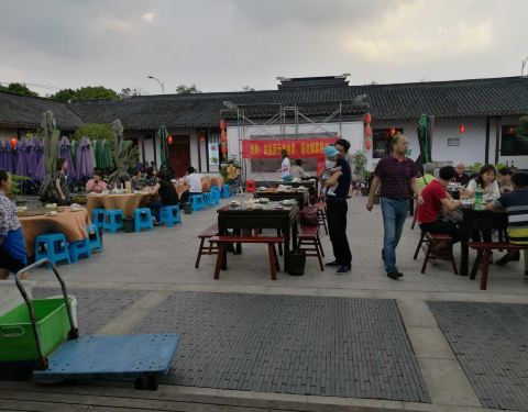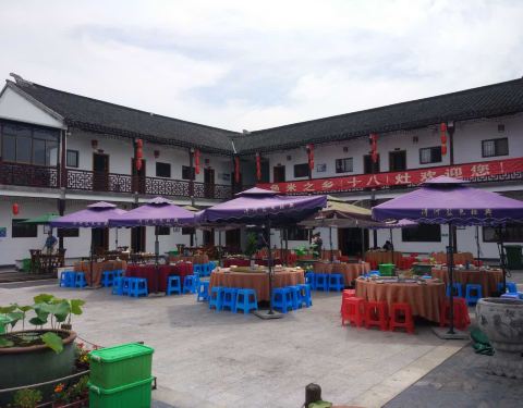 是吃农家菜的地方,整个餐厅就是个农家院舍,还有唱评弹的舞台,厨房共有十八个大灶台,所有的炖菜、煮菜、汤都是从大炉灶里烧出来的,味道很好吃。